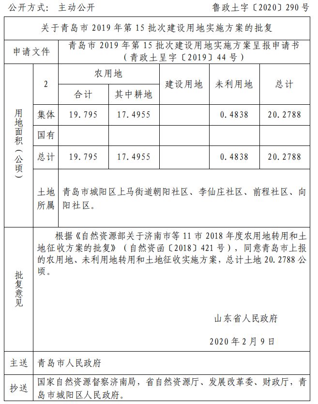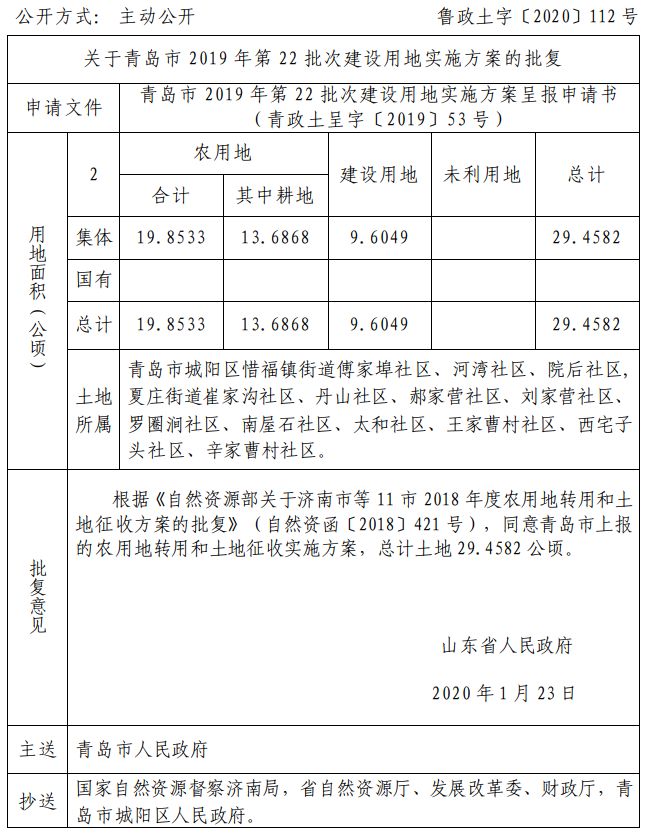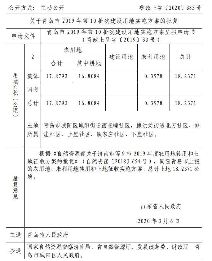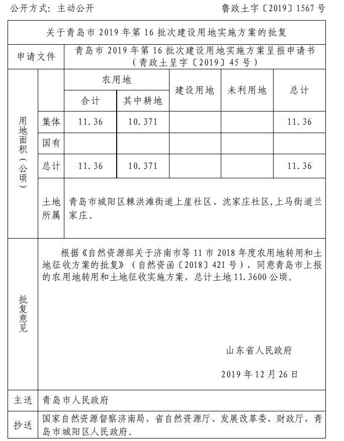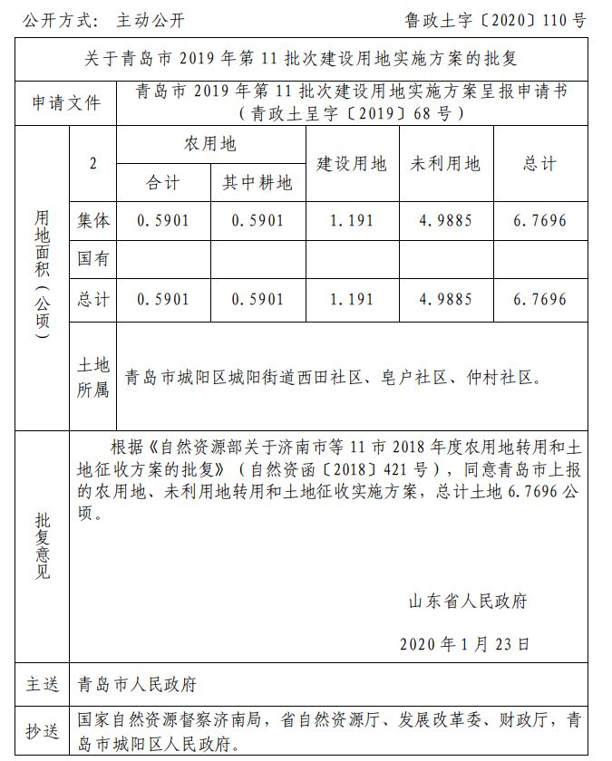 近日 山东省自然资源厅网站发布 关于青岛部分区市的建设用地的批复 快来看看有你家吗 ↓↓↓ 崂山区 城阳区