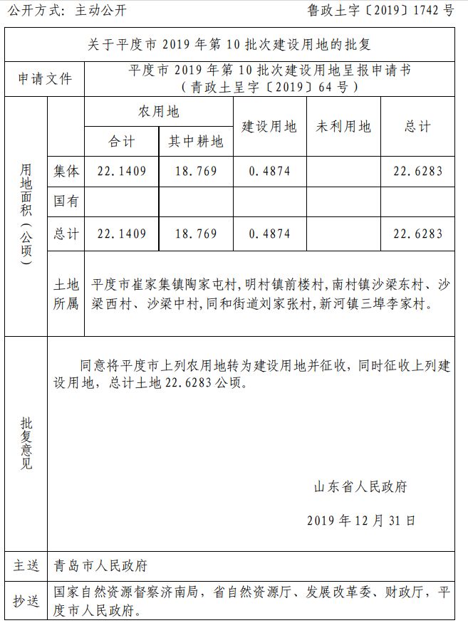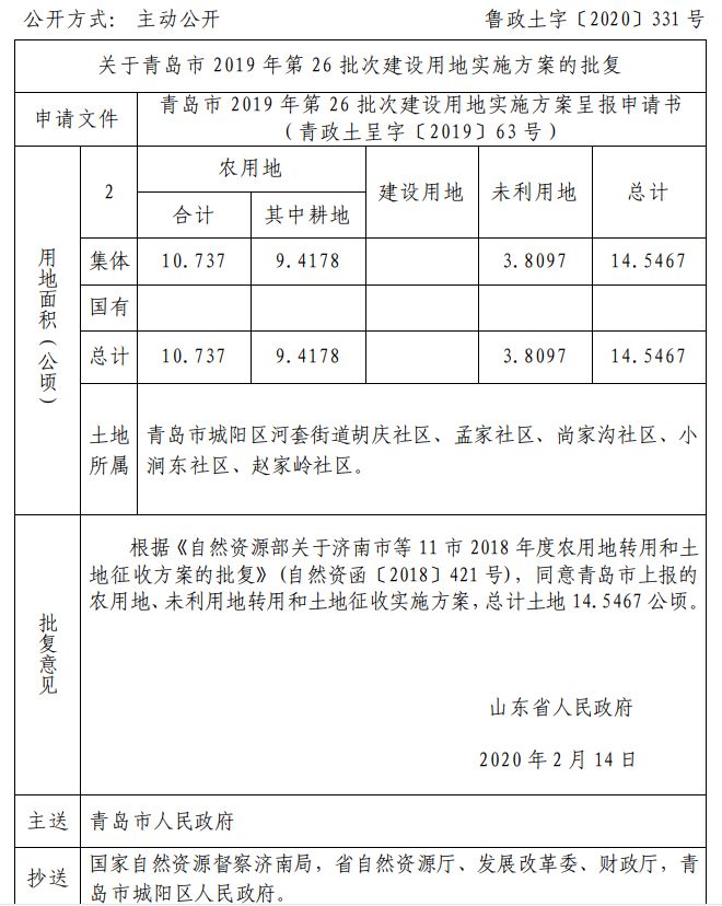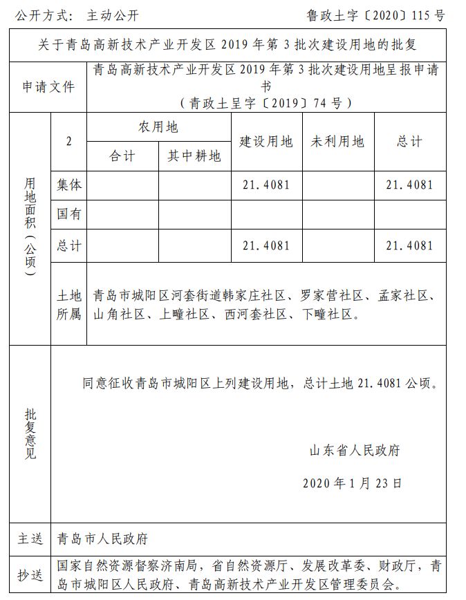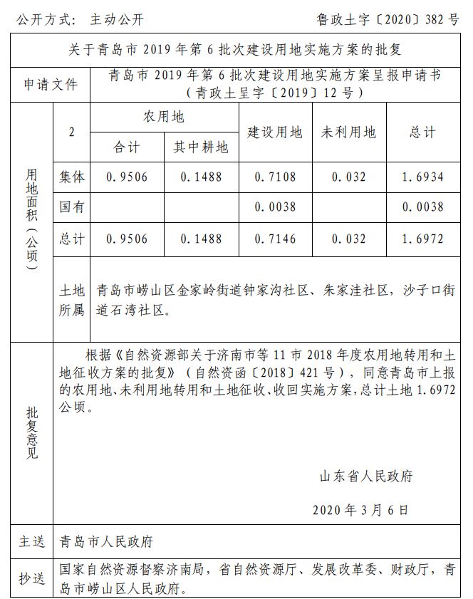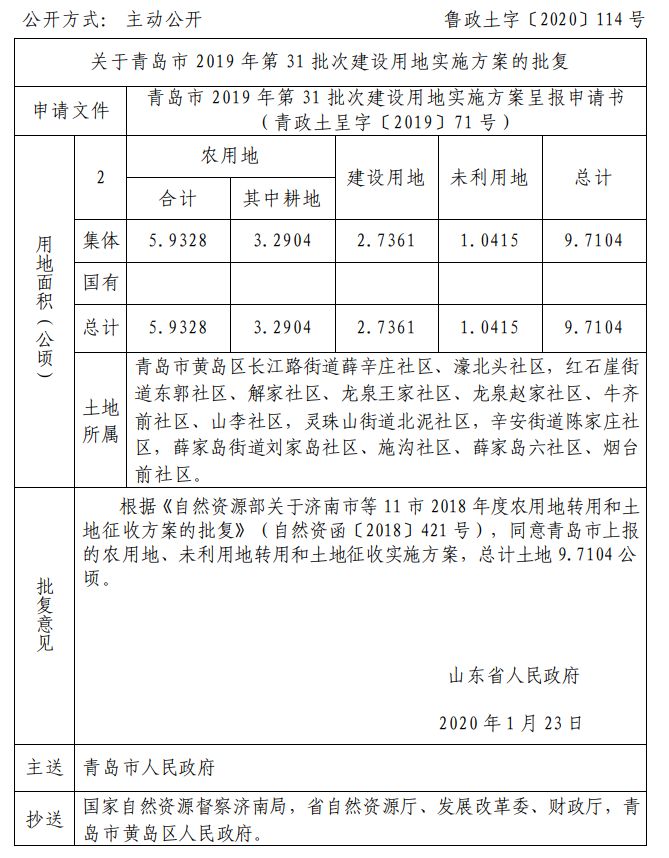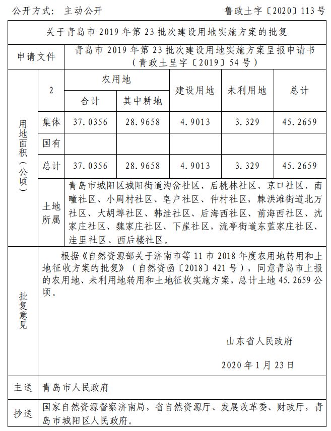 近日 山东省自然资源厅网站发布 关于青岛部分区市的建设用地的批复 快来看看有你家吗 ↓↓↓ 崂山区 城阳区