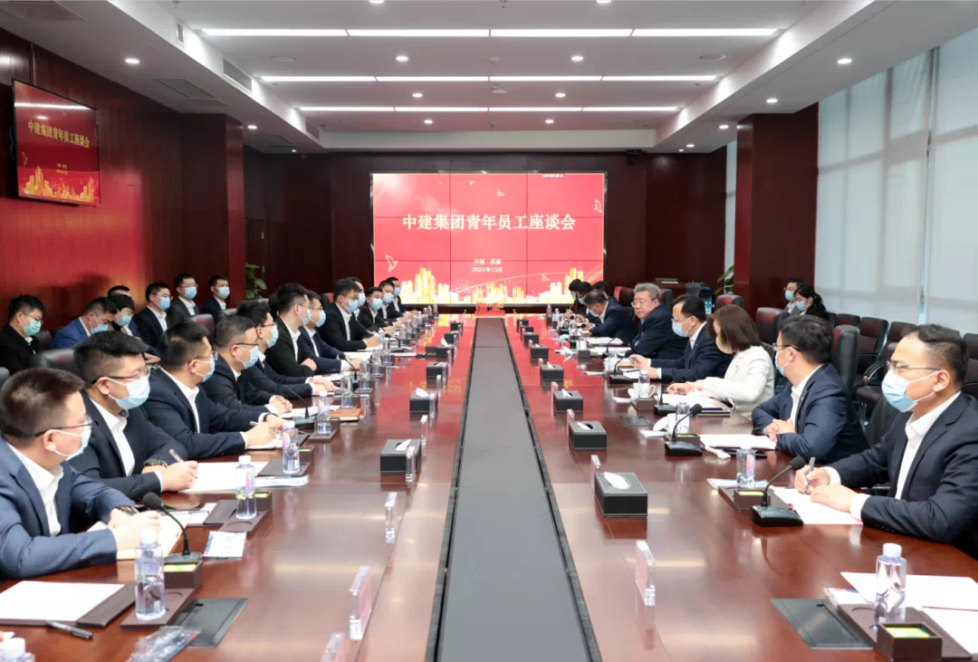 在项目会议室,郑学选主持召开中建集团青年员工座谈会,与在济子企业青年员工代表进行交流,认真倾听青年员工对企业改革发展的意见建议,深入了解大家的所思所想所盼,并对青年员工未来发展提出殷切期望。郑学选表示,青年员工要深入学习贯彻党的十九届六中全会精神和习近平总书记在中央党校(国家行政学院)中青年干部培训班上的重要讲话和指示批示精神,持续学习专业知识,在实践中磨砺意志、练强本领,不断提升自身专业化和职业化水平,并将个人发展融入到企业发展之中,永葆忠诚品格,做有情怀、有锐气、有韧劲的青年,努力成为可堪大用、能担重任的栋梁之才,为实现集团“一创五强”战略目标贡献青年力量。