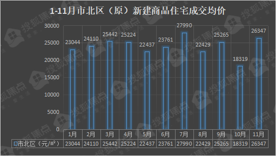 当然也有人说,经过比较长的一段调控期之后,不少开发商已经开始走低价优惠薄利多销的路线了,所以成交量上升不足为奇,不否认这种情况的存在。从数据上来看,11月各区的新建商品住宅均价环比上月确是呈现了有涨有跌的趋势,但是喵我也说过,相较于环比数据,同比数据可能更反映问题。