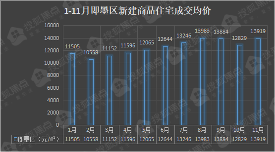查图可知,截止到11月末,青岛的新建商品住宅市场上,均价不过万的区域仅剩最北部的平度和莱西,市南的新建商品住宅仍一骑绝尘遥遥先进,崂山区紧随其后;想在主城区安家落户,市北李沧的价格单平均价都超过23000元;沿海区域想要找刚过万的房源,也许西海岸原胶南市范围内尚有选择余地;而大热的红岛(高新区)片区受政策影响,均价还在15000元/㎡之内;受撤市划区以及地铁通车等利好,即墨区新建商品住宅价格是过去一年里上涨幅度相对较大的,均价即将追平红岛片区;而下一个增长黑马是不是传说中也要撤市划区的胶州,就要看新机场通航及M8通车的利好能否拉动当地市场了。