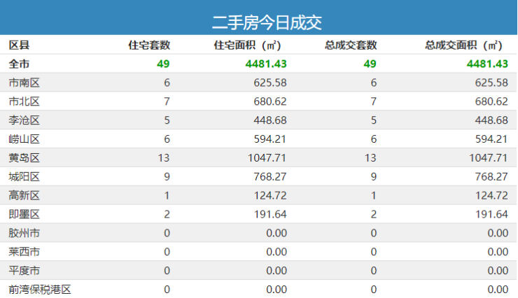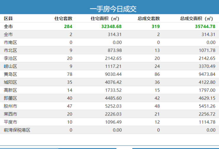 9日青岛新房成交319套 黄岛区住宅成交78套夺冠
