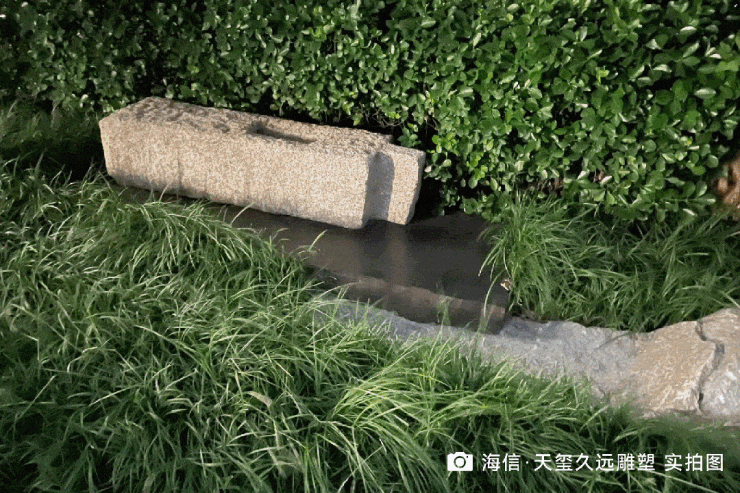 36号楼门前雕塑名叫“久远”,上半部石材取自于一座石桥的桥柱,是一块在河水中浸泡了150多年的老石头。下半部的石头底座是全新切割的镜面黑色花岗岩,两块石头的对比体现了历史和现代的对话,细节处无不展现文化底蕴和审美。