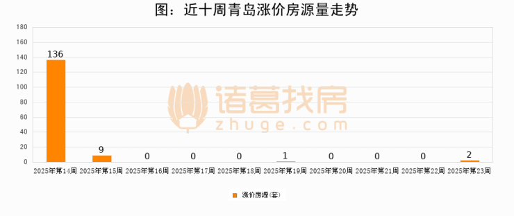 从调价房源来看,第23周青岛涨价房源2套,较上周上涨0%。与此同时,23周涨价房源占比提升8.33个百分点,业主信心持续恢复。