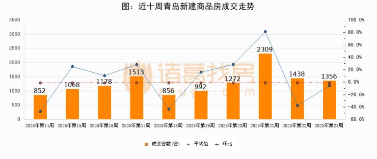【青岛成交周报】第23周新房成交1356套,二手房1298套,涨价房源2套