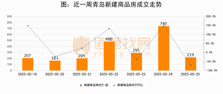 【青岛成交日报】05月25日新房成交219套、二手房65套;