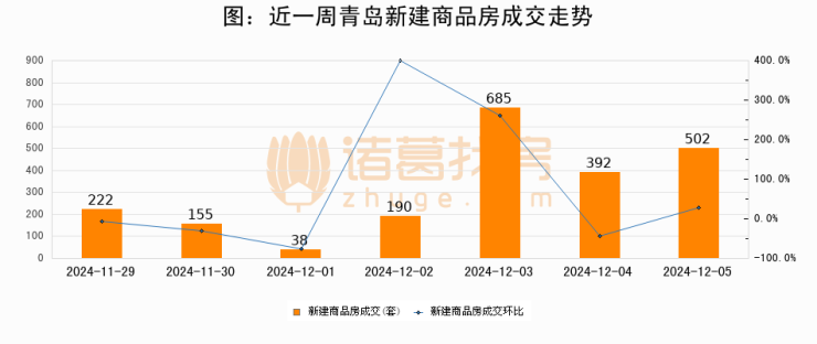 【青岛成交日报】12月05日新房成交502套、二手房328套;涨价房源1套