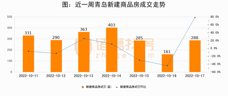 【青岛成交日报】10月17日新房成交288套、二手房297套;涨价房源84套