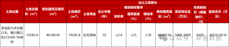 地价下调,东李4.6万㎡新地块9100元/㎡上市