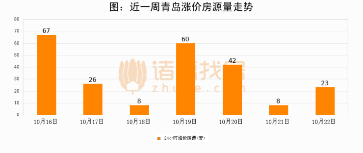 根据诸葛找房数据显示,青岛24小时涨价房源量为23套,较10月21日增加15套,环比上涨187.5%。与此同时,涨价房源占比小幅扩大,业主信心有所提升。