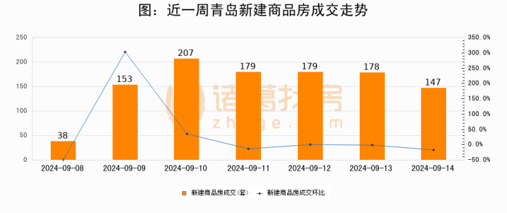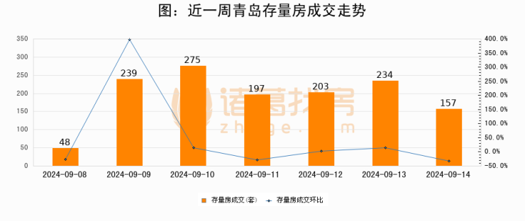 【青岛成交日报】09月14日新房成交147套、二手房157套;涨价房源1套