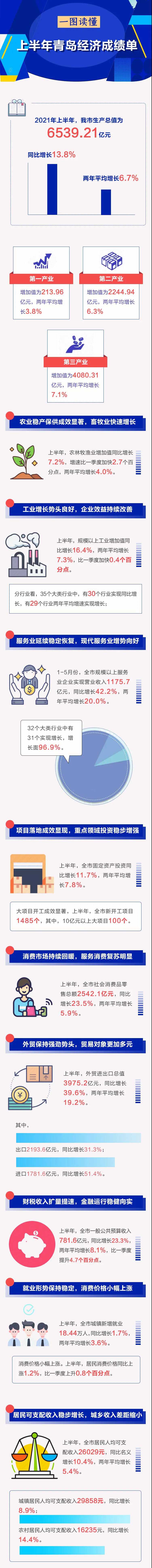 注:文章来源于青岛日报《青岛经济“半年报”出炉:GDP6539.21亿元,同比增长13.8%》