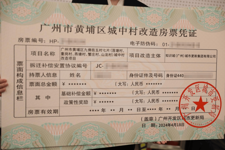 广州黄埔区城中村改造房票凭证样票 图据视觉中国