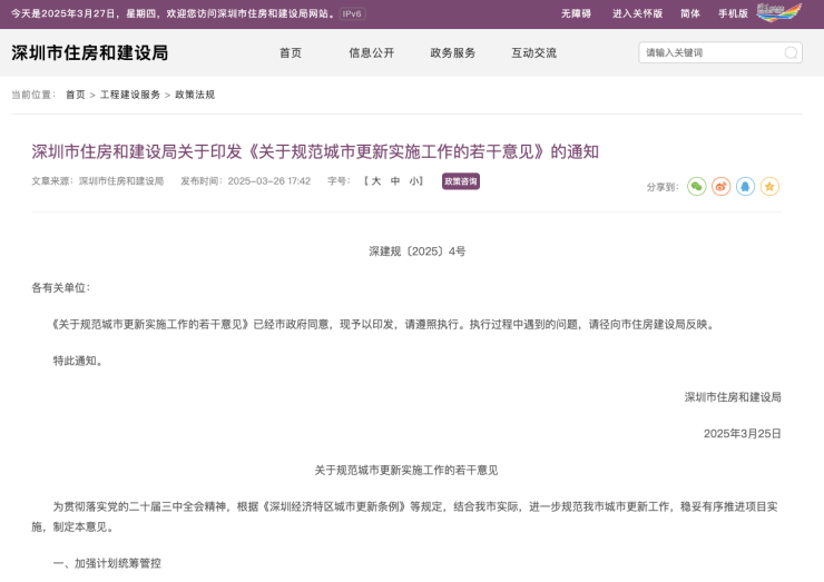 深圳市住建局26日公布的政策中提到,要推动多元化安置补偿,建立房票制度,探索城市更新项目补偿安置多元化路径,自2025年4月9日起施行。去年9月,深圳市住建局曾表示正研究房票可行性。2025年深圳市政府工作报告中也曾明确,稳步实施城中村改造,加大城市更新项目盘活力度,稳妥有序实施房票安置制度。