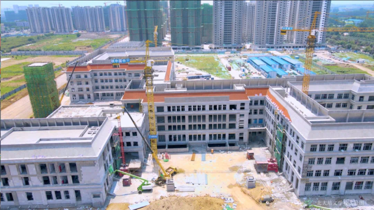 北大培文中小学部于2020年开工建设,楼体已于今年上半年喜封金顶。北大培文学校高中部在政府的支持下进展神速,今年4月份正式开工建设,预计2022年9月份投入使用,初步打算排名前列年面向全省招收初中毕业生410人,组成10个教学班,第二年、第三年实现招生数量连续翻倍的目标。