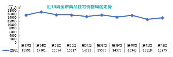 价格方面,上周青岛新建商品住宅均价为13975元/㎡,上涨856元/㎡,涨幅为6.52%。