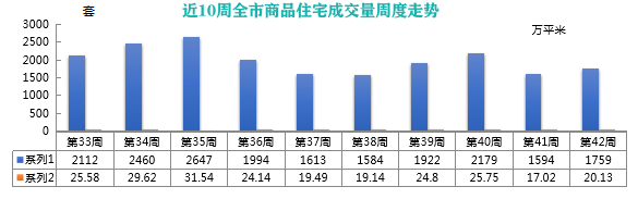 根据卓易数据统计,上周(10.11-10.17)青岛新建商品住宅成交1759套,环比上升10.35%;成交面积为20.13万㎡,环比上升18.27%。