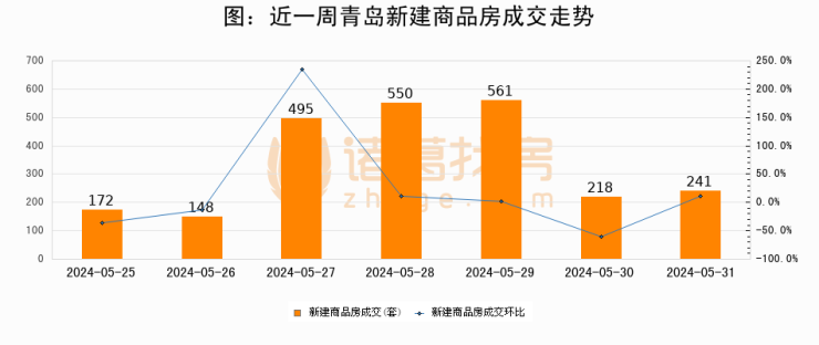 【青岛成交日报】05月31日新房成交241套、二手房234套;涨价房源19套