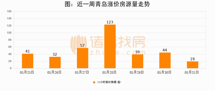 根据诸葛找房数据显示,青岛24小时涨价房源量为19套,较05月30日减少25套,环比下降56.8%。与此同时,涨价房源占比小幅回落,对于购房者来说是一个入市窗口期,购房者可抓住时机入市。