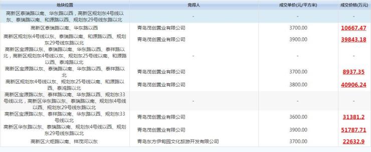 青岛茂创置业和青岛东方伊甸园文化旅游瓜分高新区7宗地块