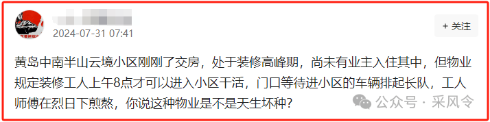 显而易见,针对这一事件,网友们的观点各不相同,众说纷纭。对于业主来说,他们希望能够在合理的时间内尽快完成房屋装修,早日入住。而物业管理方可能出于维护小区整体秩序和周边居民休息的考虑制定了相关规定。
