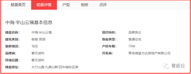 据了解中海·半山云境项目开发商为青岛海慧方达房地产有限公司,该项目占地面积53000㎡,建筑面积220000㎡,容积率2.9,楼栋总数16栋。