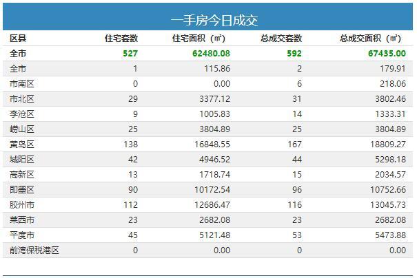 11日青岛新房成交592套 黄岛区住宅成交138套夺冠