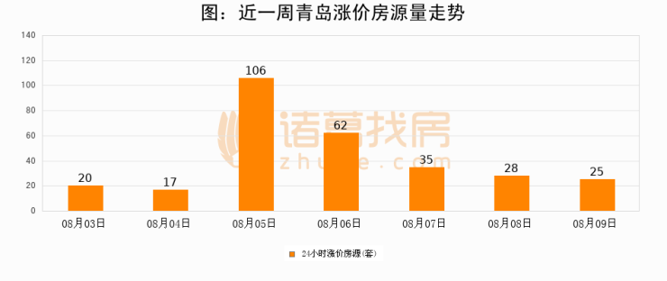 根据诸葛找房数据显示,青岛24小时涨价房源量为25套,较08月08日减少3套,环比下降10.7%。与此同时,涨价房源占比小幅回落,对于购房者来说是一个入市窗口期,购房者可抓住时机入市。