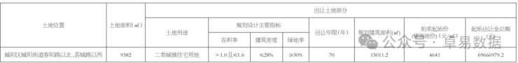 10月16日,城阳白云山一低密地块发布出让预公告,容积率1.6,总建面1.5万㎡,起拍楼面地价4641元/㎡,起拍总价6967万元。