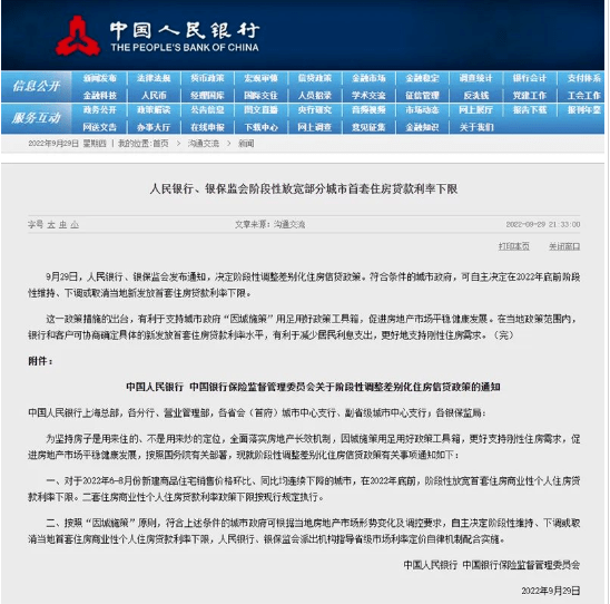 【信贷】8月信贷放松频繁LPR下调,而9月信号更为积极,9月29日夜间,人民银行、银保监会联合发布通知,凡符合条件的城市政府,可自主决定在2022年底前阶段性维持、下调或取消当地新发放首套住房贷款利率下限,首套房信贷利率有望破4。