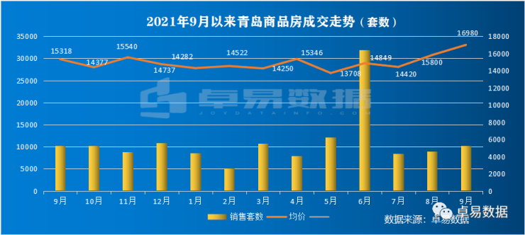 9月青岛新建商品房网签10275套(不含退房房源),成交面积138.48万㎡,成交总价235.14亿,环比分别上涨16.4%、34.56%、44.54%;同比分别上涨14.69%、31.65%、49.76%。(受主城放松限购影响,多高端项目网签拉高价格)