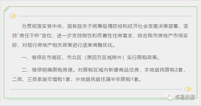 【青岛政策】9月15日,青岛官宣市南、市北(老四方除外)执行限购,而作为主城的崂山区、老四方以及李沧区取消限购;限购区域多胎家庭可增购1套。限购放松政策出台后,崂山高端项目的活跃度增加,网签增加明显,尤其面积和成交总价增加明显。
