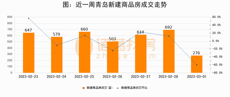 【青岛成交日报】03月01日新房成交276套、二手房339套;涨价房源171套