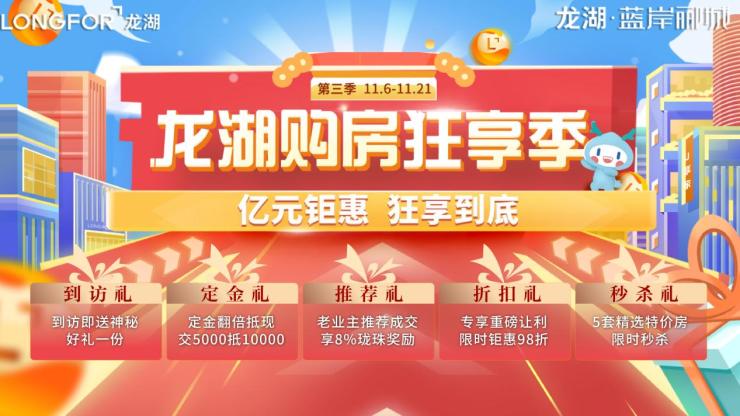 双十一龙湖购房狂享季,拒绝套路,给利真心实意!双11收尾大冲刺,折扣回收倒计时!亿元钜惠,狂享到底!史无前利,疾速抢藏!