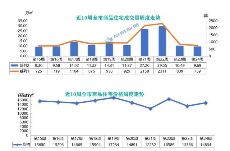 根据卓易数据统计,上周(6.9-6.15)青岛新建商品住宅成交759套,环比下降9.54%;成交面积为9.69万㎡,环比下降7.63%。