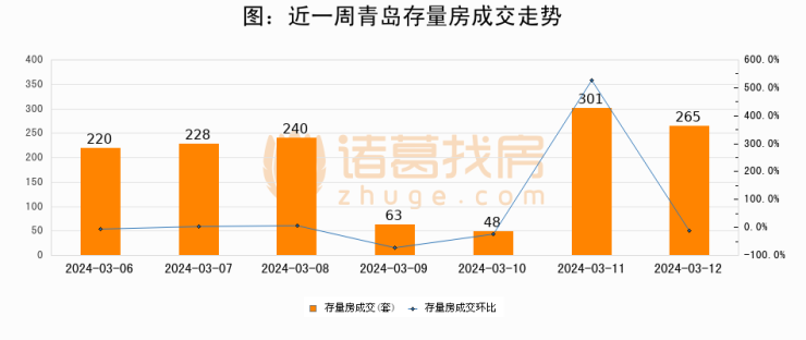 【青岛成交日报】03月12日二手房265套;涨价房源36套