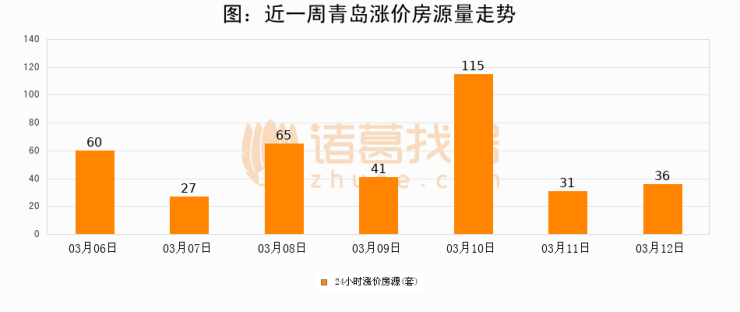 根据诸葛找房数据显示,青岛24小时涨价房源量为36套,较03月11日增加5套,环比上涨16.1%。与此同时,涨价房源占比小幅扩大,业主信心有所提升。