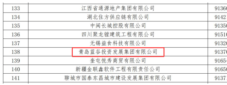 青岛蓝谷投资发展有限公司、青岛海洋科技投资发展集团有限公司、青岛上合城市更新集团有限公司等榜上有名。