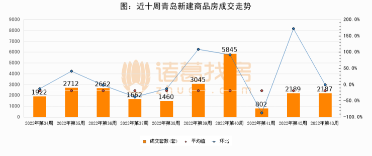 【青岛成交周报】第43周新房成交2187套,二手房1217套,涨价房源614套