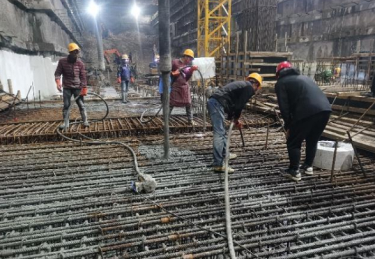 日前,青岛地铁2号线西延段中铁四局项目部顺利完成国际邮轮港站首段底板混凝土浇筑施工,标志着地铁2号线西延段明挖站正式进入车站主体结构施工阶段。
