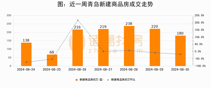 【青岛成交日报】08月30日新房成交180套、二手房200套;涨价房源8套