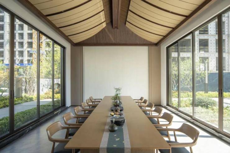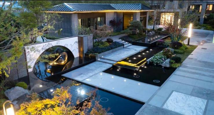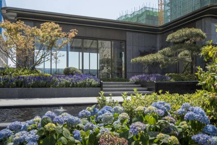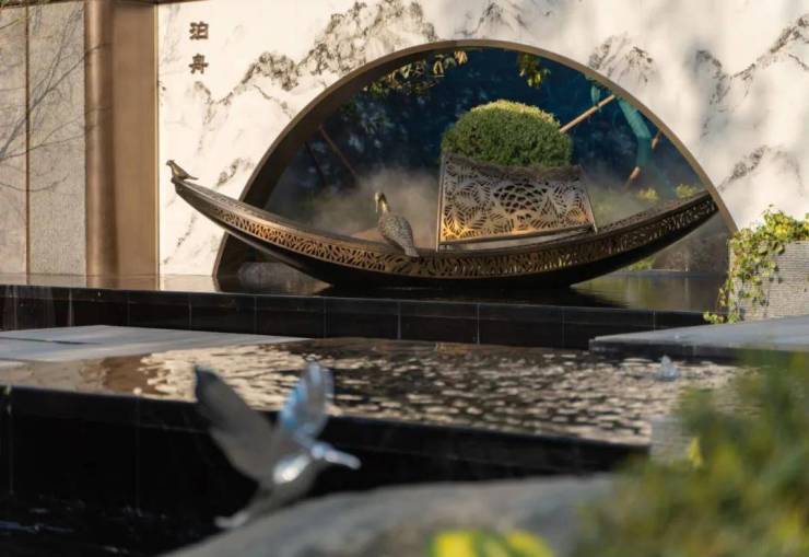 融合自然现代美学,营造东方奢雅的艺术体验。打造“锦绣六境 艺术五园”景观园林,纱影水幕、墨染雅静、波光叠溪等空间营造,将秩序感及仪式感拉满;石、林、水、花、船、桥等点缀其中,一步一景一画卷,展现繁华深处一处静谧留白时光。