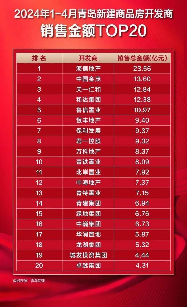 海信地产深耕青岛29载,深得市场与业主信赖,2024年1-4月份商品房销售金额稳居青岛TOP1,按期交付率100%,客户交付满意度高达99.5%,累积为60余万业主提供专业服务。