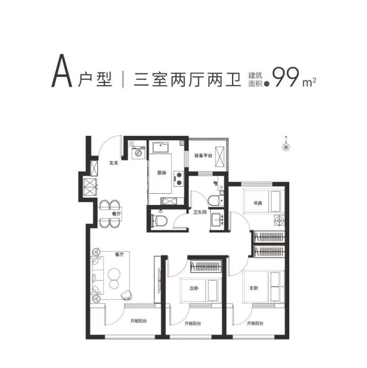 建面约99㎡三室两厅两卫,LDKB餐客厅一体化,约3.6米客厅开间,盛纳四季美景;南向三阳台,约1.5米进深,尽揽清风阳光;创新1+1卫生间,独立双马桶,满足家人双卫需求。