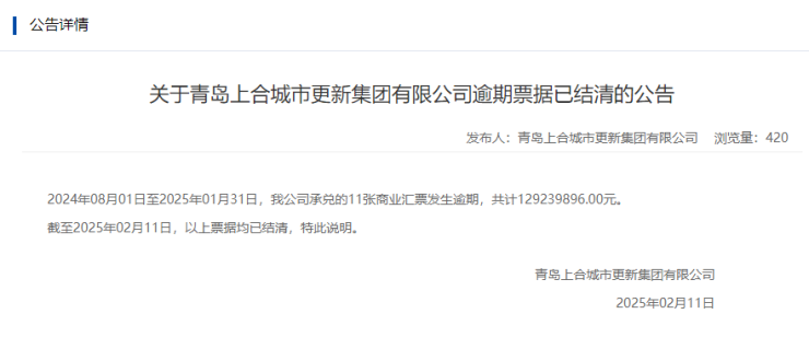 本期名单中,青岛红建投资控股集团有限公司和青岛上合城市更新集团有限公司在月初发布公告,称截止公告发布时,票据均已结清。