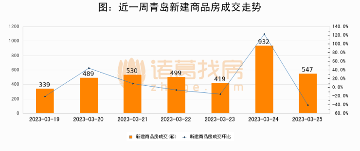 【青岛成交日报】03月25日新房成交547套、二手房62套;涨价房源148套