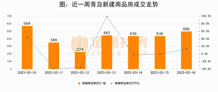 【青岛成交日报】03月16日新房成交496套、二手房319套;涨价房源193套