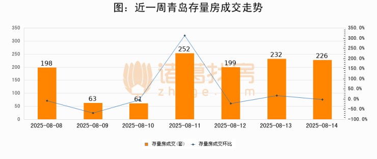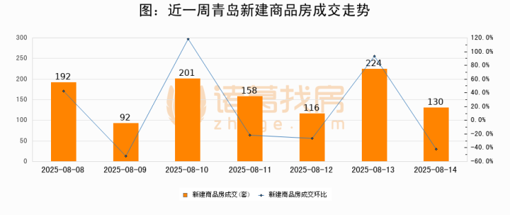【青岛成交日报】08月14日新房成交130套、二手房226套;