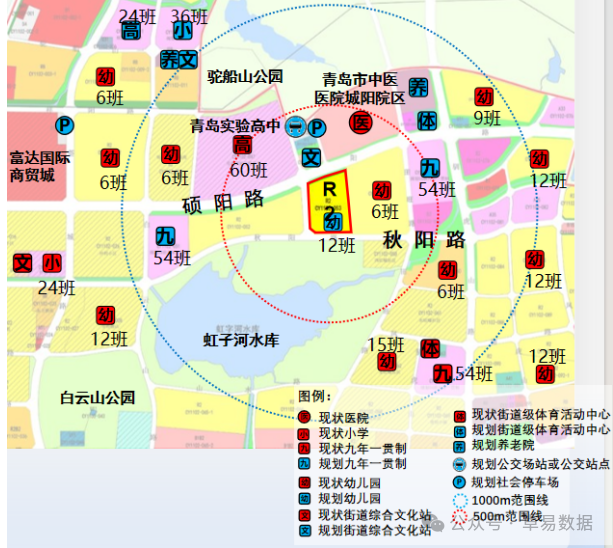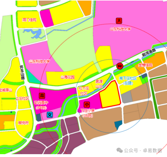 2. 教育与医疗:周边有现状下庄小学(36 班)、西海岸新区致远高中(84 班),距辛安街道社区医院约 3 公里,附近约 3 公里有在建西海岸中医院。