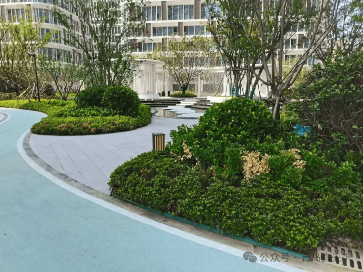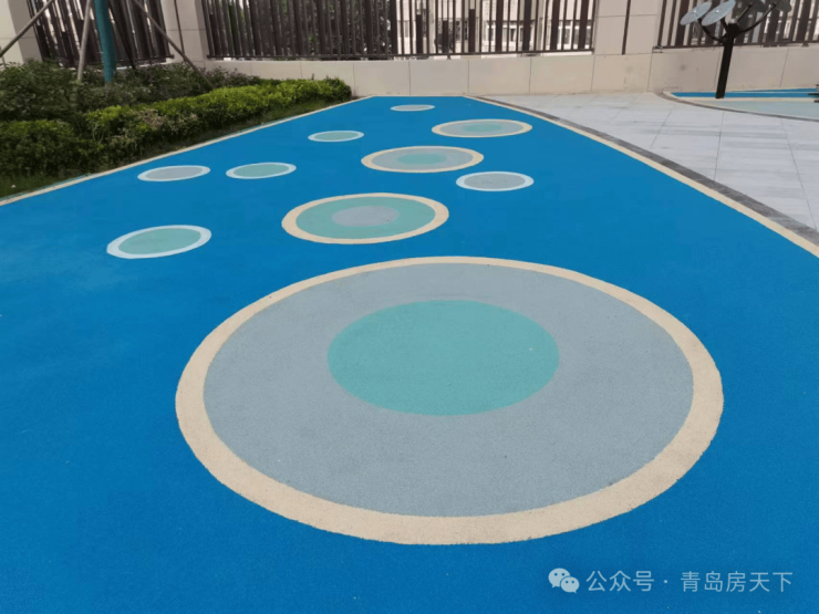 整体来看, 项目园区绿化不多,但是水系、儿童娱乐区设置齐全,塑胶跑道、塑胶铺设运动活动区也相对比较好(较之目前不少项目以沥青地面刷涂料的方式要强好多)。